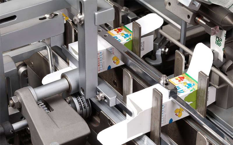 自動裝盒機進(jìn)料一般分為三個入口:說明書入口、藥瓶入口和機包盒入口。從機包盒進(jìn)料到最后包裝成型的整個過程大致可以分成四個階段:下盒、打開、裝填、合蓋。下盒動作通常是由一個吸盤從紙盒進(jìn)料口吸取一個紙盒,下行到裝盒的主線上,由一個導(dǎo)軌卡位將紙盒固定并用一個推板打開紙盒,同時會有兩個可向前移動的卡位從下面升起,從前后方向卡住紙盒的側(cè)面,使盒子打開成直角并前移到裝填區(qū)域。 在裝填區(qū)域填裝后,機器的機構(gòu)會將耳朵折進(jìn)左右的導(dǎo)軌中,然后再進(jìn)行合蓋動作。合蓋前機構(gòu)會先彎折紙盒的插舌,然后有一推板推動盒蓋彎折,使插舌插進(jìn)盒子 中并使鎖扣扣緊。合蓋動作是個關(guān)鍵性的動作,完成的好壞與紙盒的結(jié)構(gòu)和機器調(diào)節(jié)的準(zhǔn)確程度有很大關(guān)系。