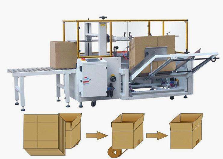 紙箱成型機(jī)是指自動(dòng)完成開箱、成形、下底折葉折曲,并現(xiàn)時(shí)完成下部分膠帶粘貼,將疊成紙板的箱板打開,箱子底部按一定程序折合,并用膠帶密封后輸送給裝箱機(jī)的專用設(shè)備,又名紙箱開箱機(jī)。
